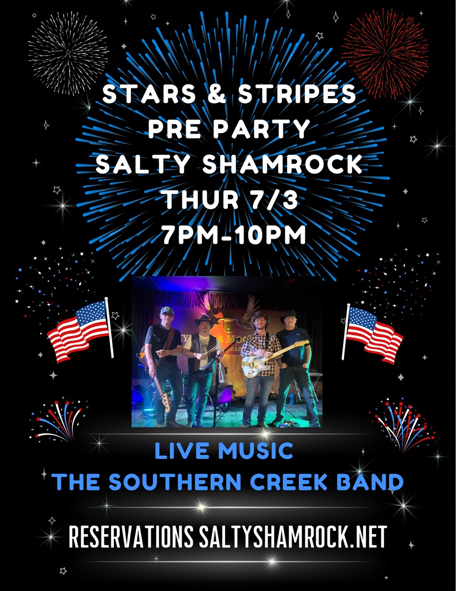 Come celebrate the holiday week with us at Salty Shamrock with Southern Creek! Bring all your family that’s in town and friends and come and enjoy one of Apollo Beach‘s favorite bands.